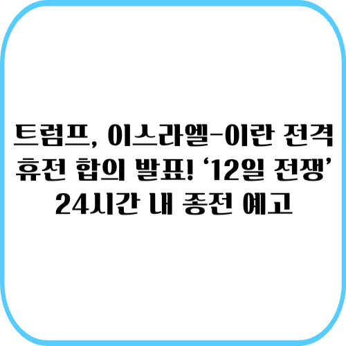 트럼프, 이스라엘-이란 전격 휴전 합의 발표! ‘12일 전쟁’ 24시간 내 종전 예고